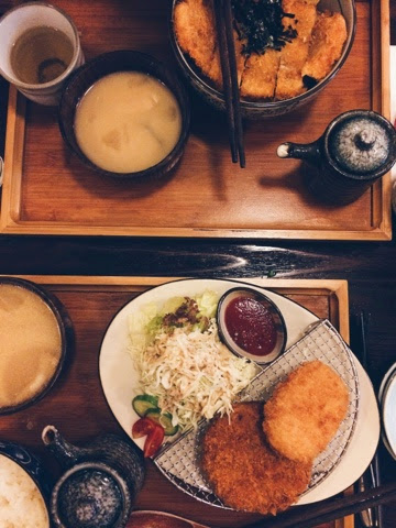 最後我和我媽選擇了滑蛋吉烈豬扒丼和免冶雞肉薯餅+野菜薯餅定食。