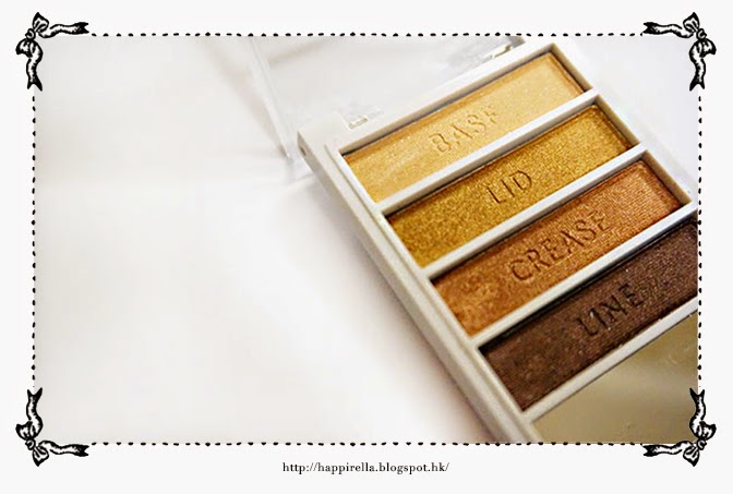 我對金/古銅色的眼影組合別有鍾情,一直都想利用這些眼睛化出異國風情的感覺!其實手頭上已經買了很多,可是沒有合適或理想的。 今次e.l.f 這組看上來十分不錯。CREASE 的一格簡直是我的菜!packaging 上的設計也十分簡單而不失大體。果然是平民牌子,設計都是偏向穩重簡潔