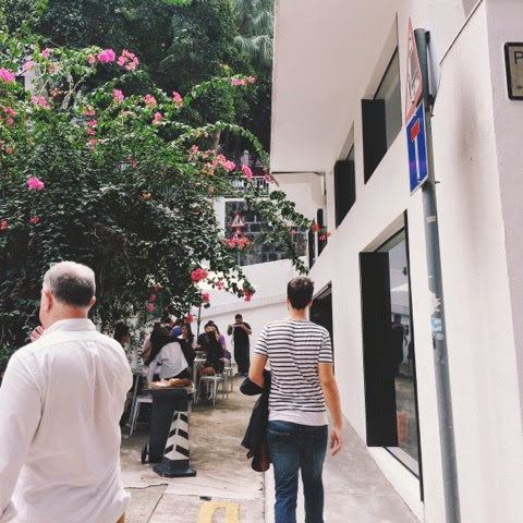 位置於街道的盡頭可以說又多怪就有多怪,可是旁邊美麗的花朵卻增添了綠意及休閒的感覺。這個cafe是很細很擁擠,開放式的廚房,位子就是不多,相反住在戶外反而比較舒服沒有這麼擁擠呢,雖然是賣西式食物,可是卻和在沙灘上的冰室感覺很相似哈哈。