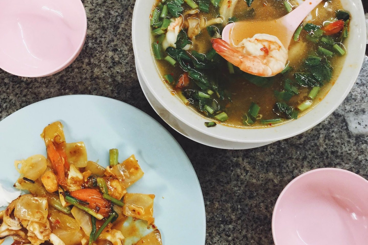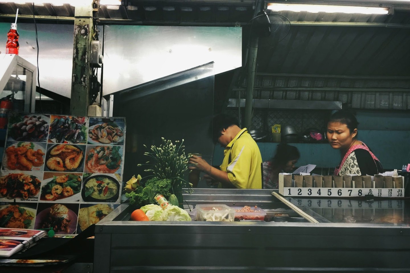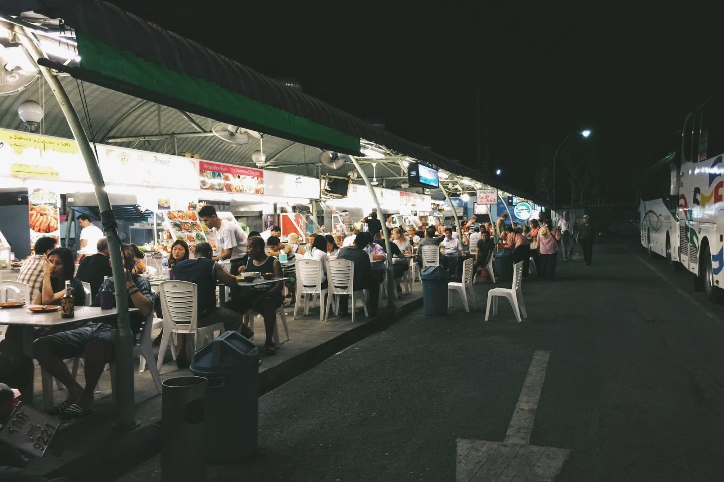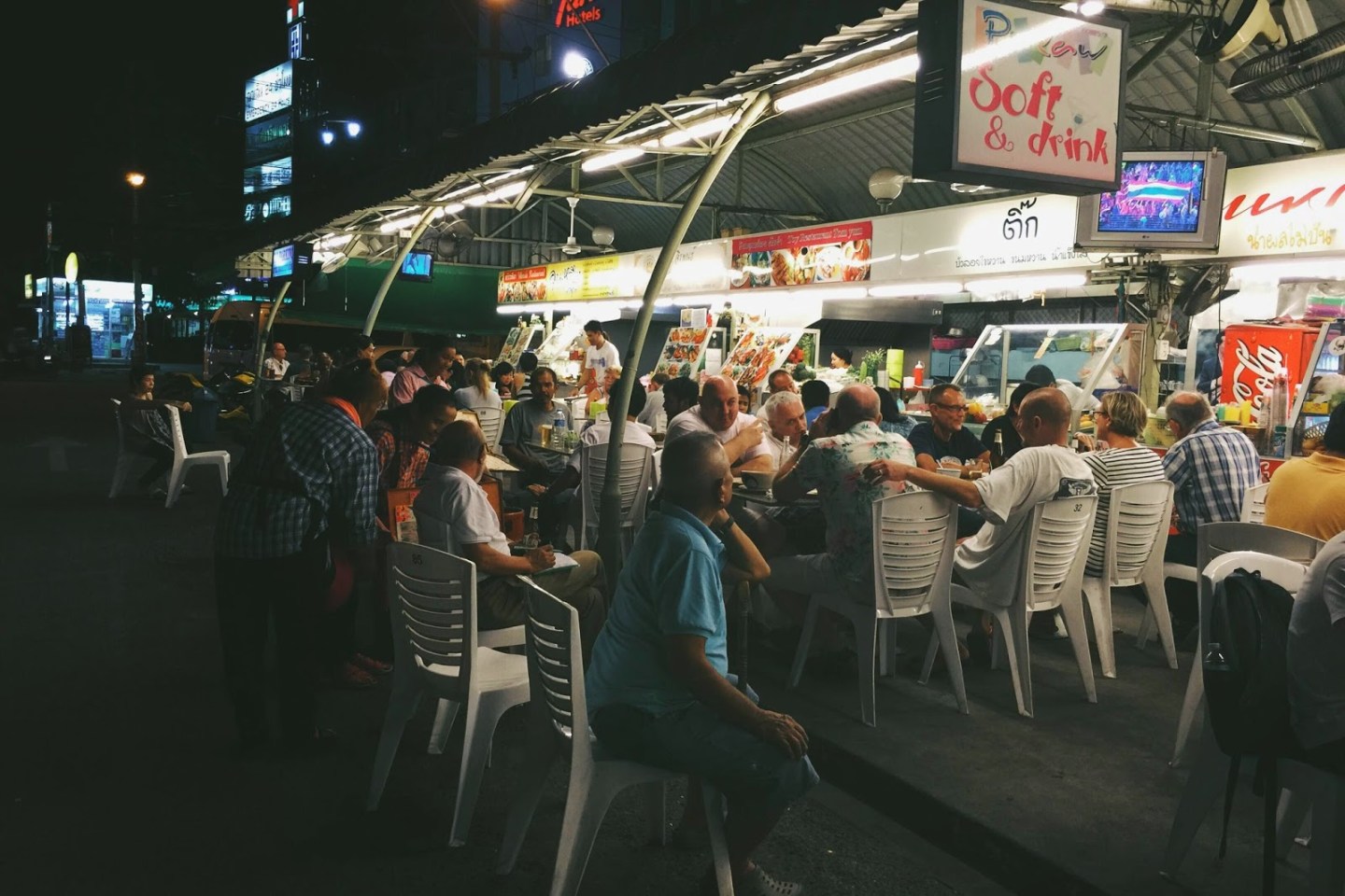 回到 Pattaya,我們簡單沖洗後就出去覓食。可惜這裡觀光味太重,餐廳多是賣西式料理,特別是 Pizza。但身在泰國,怎麼能放棄正宗泰菜呢?堅持要吃當地小吃,才是真正體驗異國文化的一部分。最後,在一個看似巴士停車場的小夜市找到地道的泰式小攤。