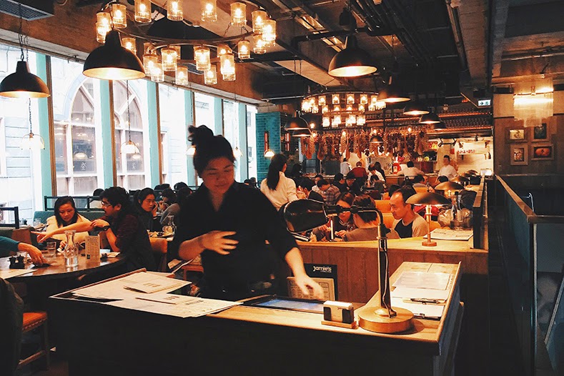 從小時候已經看Jamie Oliver的節目。電視上的他無論做什麼樣式的菜餚看起上來都這麼的誘人。小時候沒有太多的機會看老外,還覺得Jamie Oliver帥帥的呢。如今這位名廚終於都在香港開張了他的意大利餐廳。雖然不是他的fans,不過我也希望有機會一嘗名廚級的餐廳呢。很久之前已經嘗試walk in,不過永遠都是高朋滿座,雖然和自己說總有機會再來,不過因為都不再居住銅鑼灣,也沒有需要特地再來銅鑼灣,今次則好約了表弟在銅鑼灣lunch,大家都沒有嘗過Jamie’s Itilan。雖然是星期六,可是卻很神奇似的不雖要等候。直接walkin即可。終於有機會讓我更貼近Jamine一步!