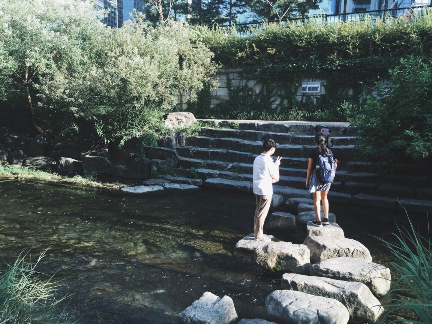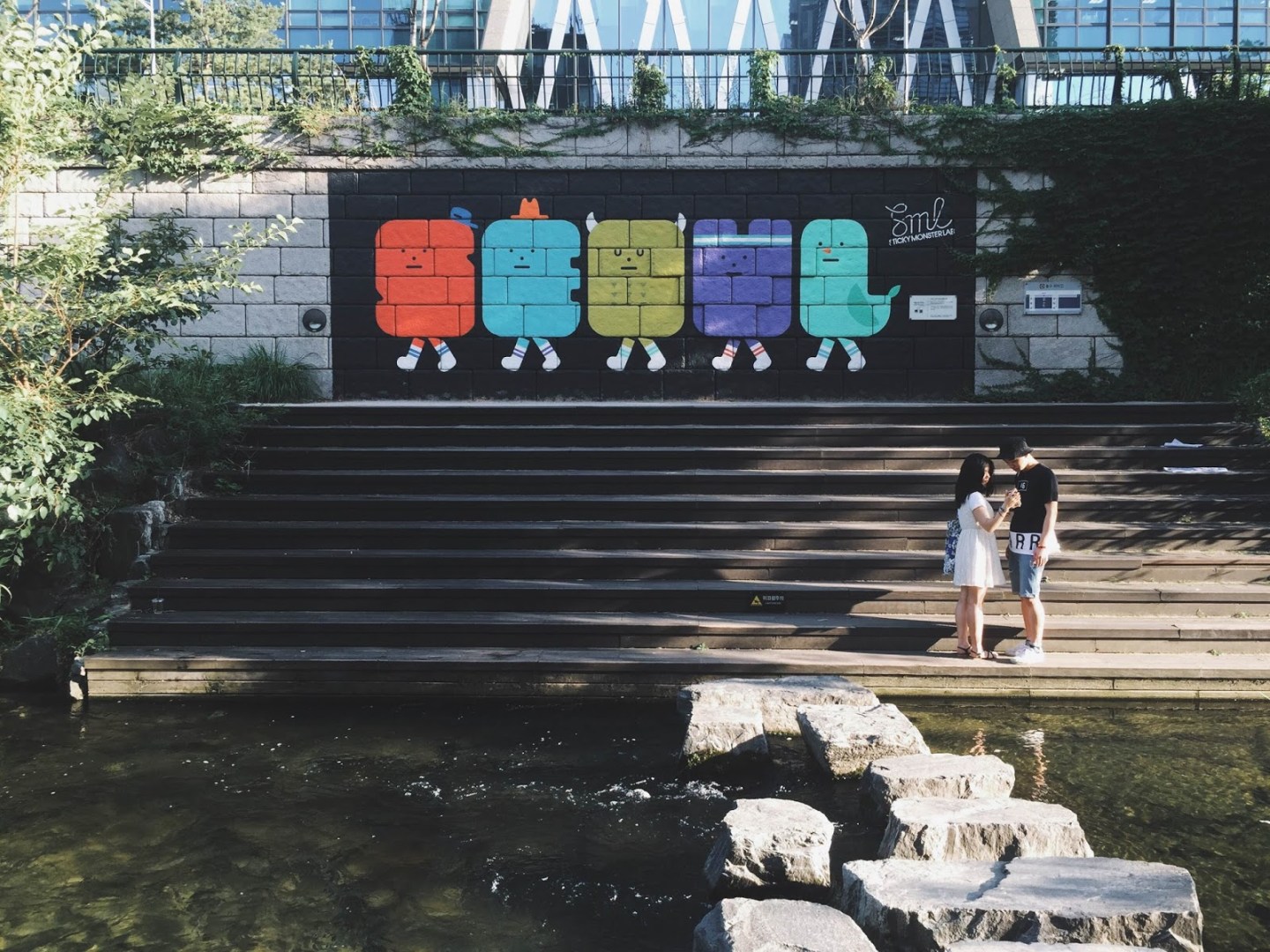清溪川是穿越首爾市中心的一條人工河,總長約13.7公里。沿路有小噴泉和遮蔭橋墩,走起來既涼爽又愜意。也看到很多當地人在約會、聊天,氣氛非常悠閒。