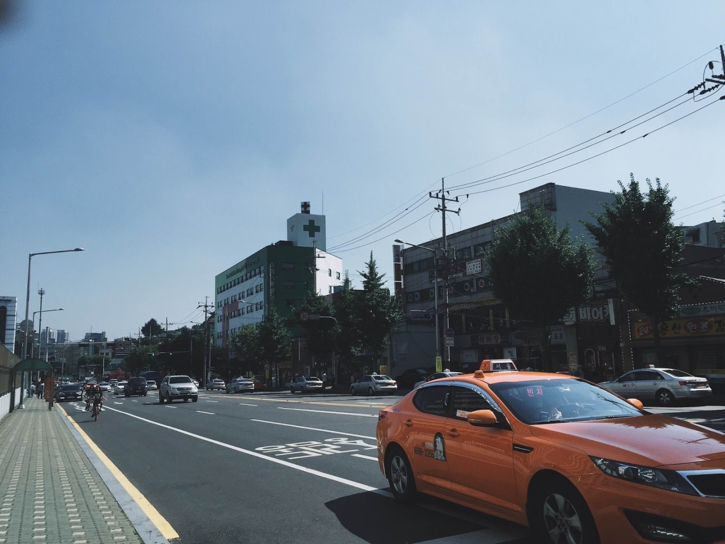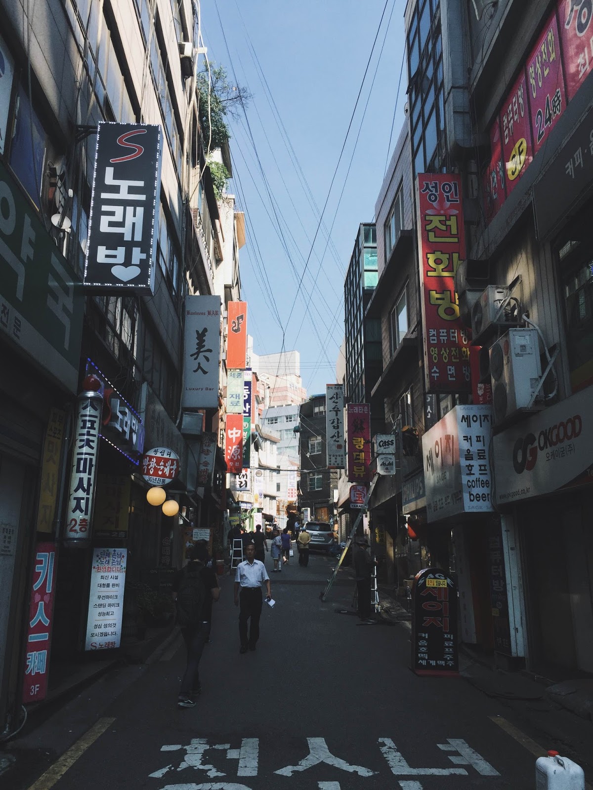 韓國的天氣雖然是夏季,但乾爽得讓人心情大好。長時間步行也不太會出汗,和香港那種濕黏難耐的悶熱感完全不同,讓我超愛這種氣候。民宿附近就是南大門市場,聽說什麼都有賣,而且價格便宜。不過我們當天只是經過,因為這趟旅行重點不是購物,是吃。