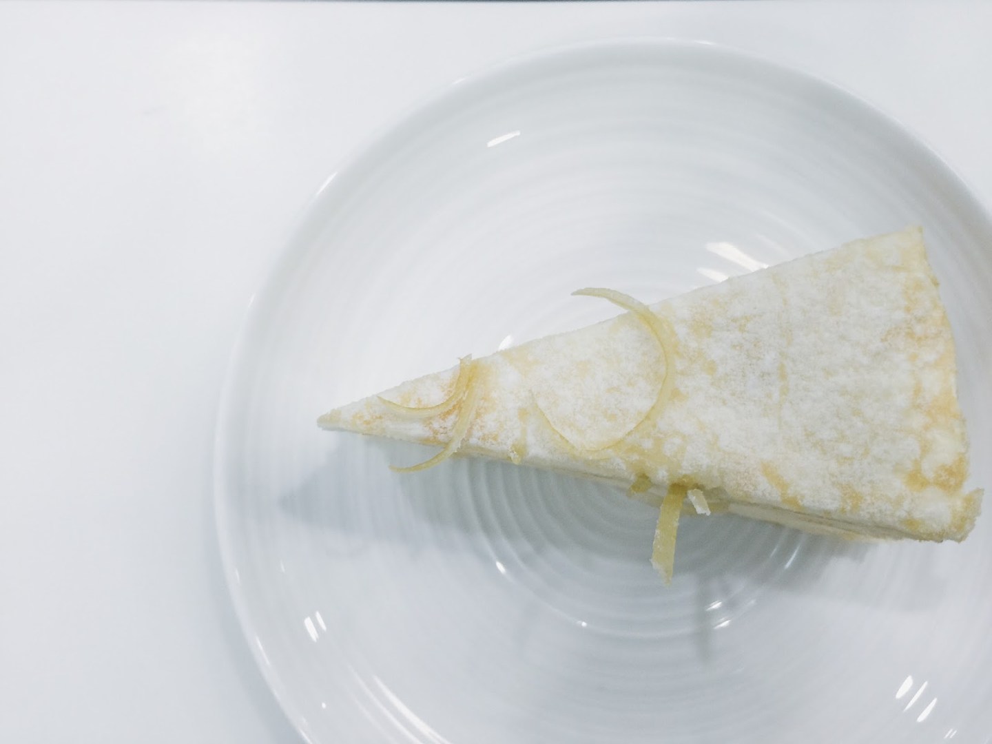 不用太大力氣,輕輕便輕易把蛋糕割開了,可見裡面的Crêpes又多薄!如果這個處理得不好的話便很容易變得粗俗及肥膩了。 這樣的功力我很難怪這裡的蛋糕有多項美名。當時的我也很貪心的說,除了點了他們的招牌原味,也點了清新的檸檬味。