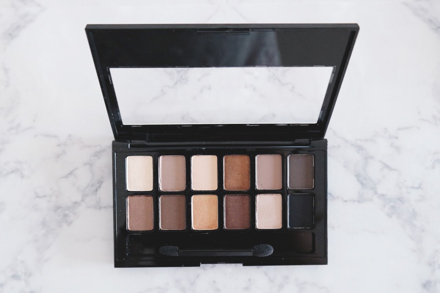 不過附送的眼影掃質素很差,大家大可以不用,而且眼影掃的空間還剩很多空間,Maybelline這個大廠怎麼不換支比較好的掃啊。感覺超差。而且我沒有用但眼影掉粉掉了很多呢⋯⋯