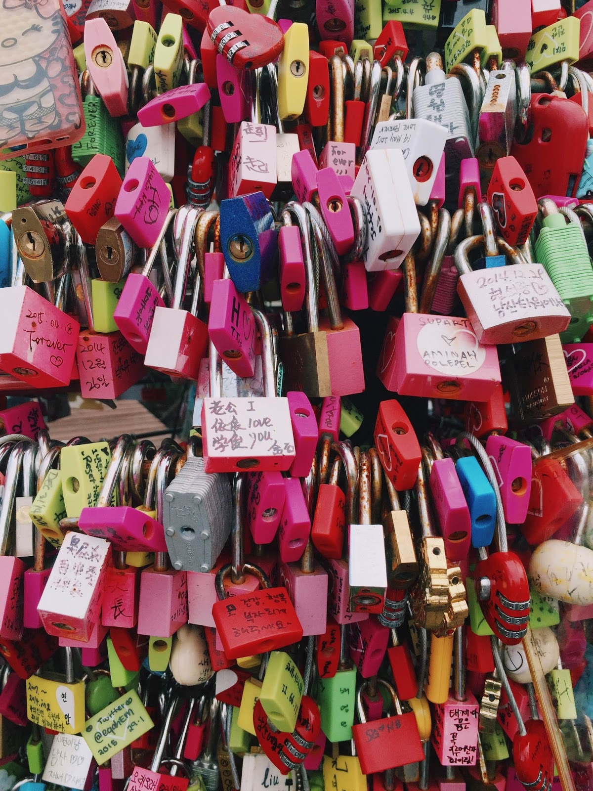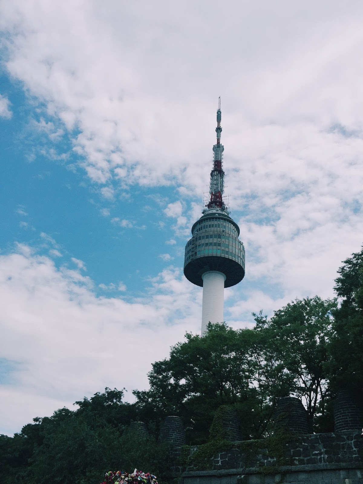 明洞附近就是有名的南山。我們步行到南山的纜車站,搭乘纜車上山,一路可以欣賞到首爾市區的景色。山頂上的愛情鎖牆非常有名,滿滿的鎖頭見證著無數情侶的願望。雖然現場賣的鎖價格不便宜,但在這樣的氣氛下,還是忍不住會想留下些什麼。