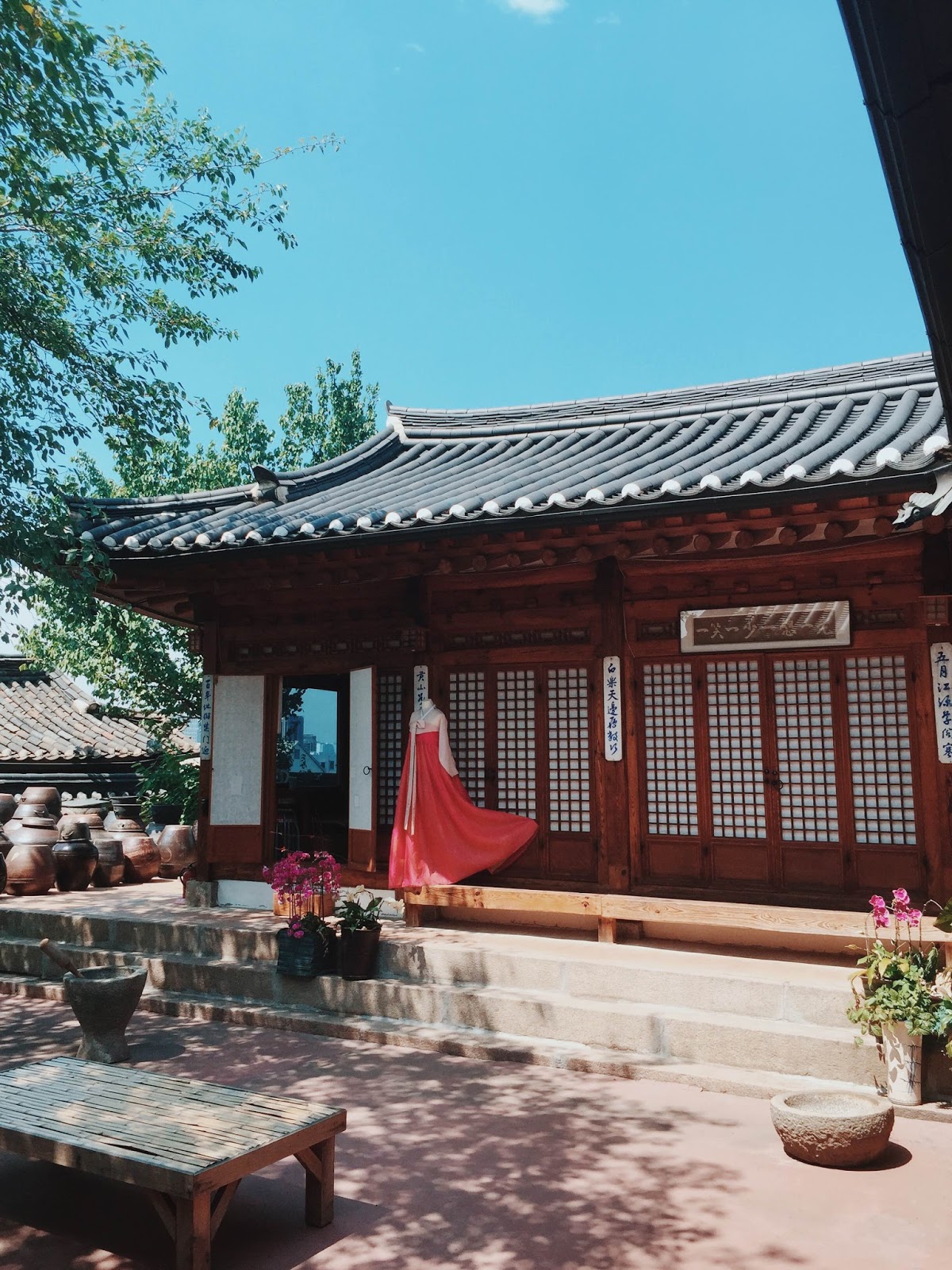 這天,我們安排了體驗韓國傳統文化的行程,來到北村韓屋村(북촌한옥마을)。北村位於首爾鐘路區,鄰近景福宮、昌德宮和宗廟,是以韓屋和傳統建築風格著稱的小村落。北村給我的感覺,有點不可思議。雖然沒有宏偉華麗的飛閣流丹,但整個氛圍濃厚古意,步調緩慢,讓人感覺都市的喧囂在這裡完全沉澱了。巷弄間不時可見特色小店、咖啡館和手作工坊,每一條小路都藏著驚喜。