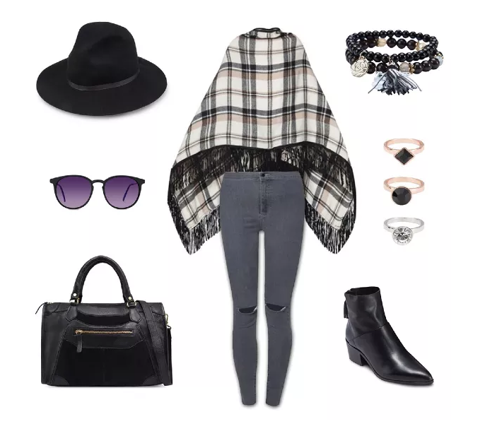 Checked Cowl Poncho (Topshop) HKD$399 | Moto Grey Ripped Joni Jeans (Topshop) HKD$509 |