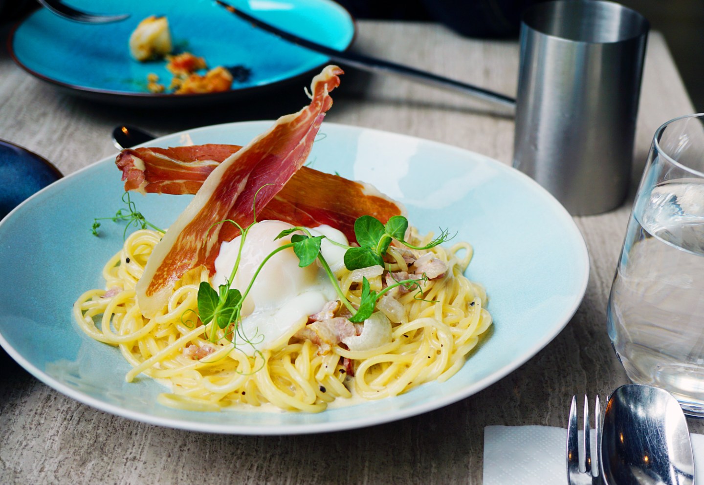 當天的店員為我們介紹了這個菜式的Parma Ham是他們自家風乾的,聽了後也十分有興趣。不過吃上口後就覺得還好,中等程度左右。 但很喜歡他們的cream sauce, 因為剛剛好,我很怕cream sauce做得又濃又膩,這個則不太膩,不過失敗之處就是在蛋上,比較傳統的意式carbonara的蛋理應是流心或還未熟的狀態,可是ATUM今次煮得過熟了,美中不足,不能生蛋黃汁伴cream sauce了。
