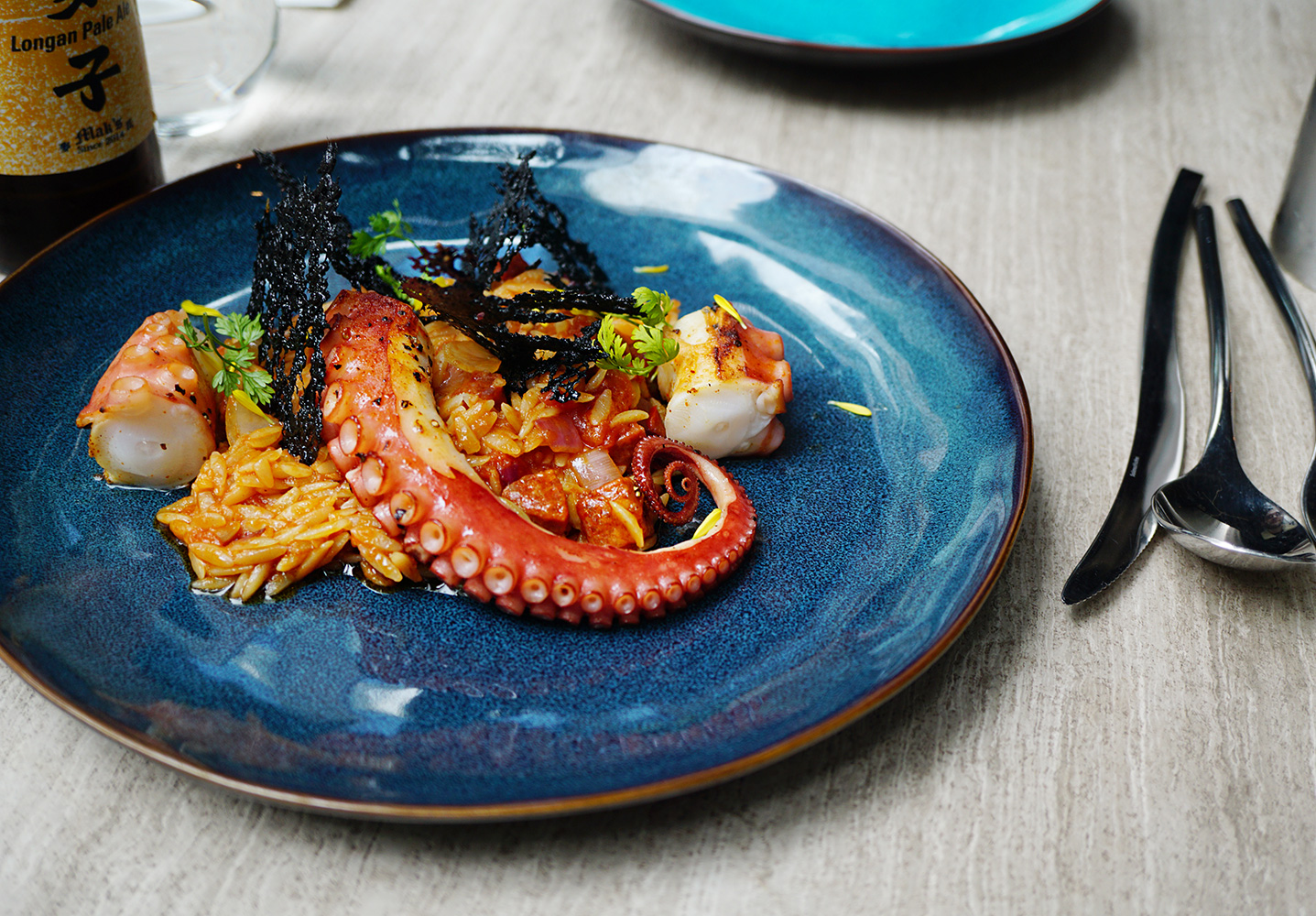 吃下去的時候,醬汁除了有很濃烈的蕃茄味外,也帶點麻辣,十分惹味。至於章魚的口感比較硬,很視乎你對章魚的口感,對我來說我很喜歡有咬感的章魚,但我男朋友就喜歡很柔軟的,但個人還是覺得避免給小朋友吃,就是怕他們嗆到了。至於Ink Chops,個人覺得輔助性不太強,沒有什麼特別之處,但用來增強視覺上的效果確是很好。