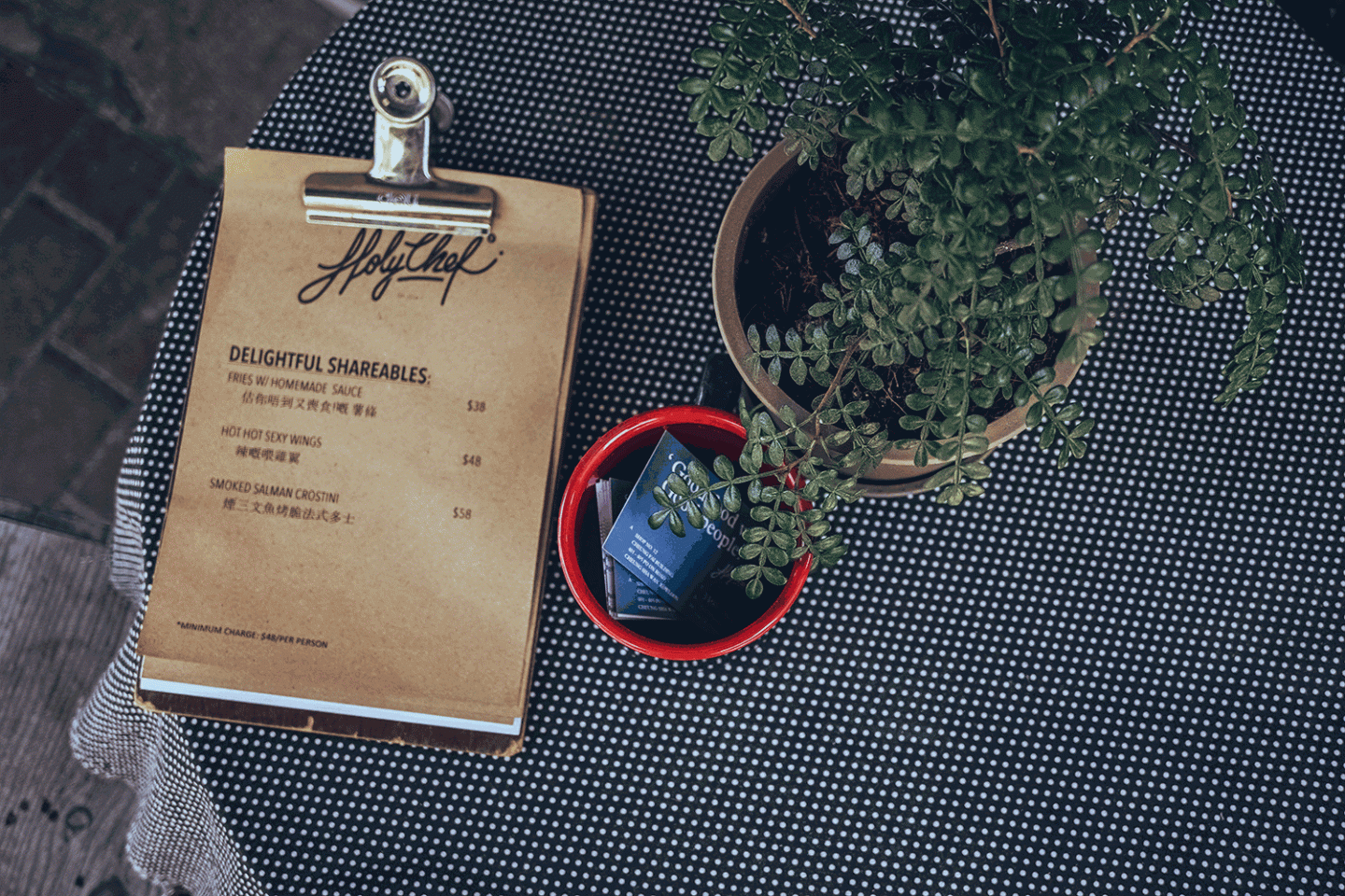 我曾經和從事餐廳管理的男朋友L打趣過,現在的餐廳也是要順潮流的,看看現在室內及時裝的走勢是什麼? Minimalism 和 Hipster。只有你餐廳設計到以上其中一點,餐牌設計特出點,有型一點,你一定可以成為現在所謂的"Trendy Restaurant" 了。 Holy Chef 第一眼的感覺也是給我如此,完全是走Hipster 或所謂的文青風。門面設計合格了,食物又如何呢? 我同事讚不絕口,但我個人覺得當天除了頭盤的蕃茄湯及黑松露蟹肉薯仔沙律是高質必吃外,其他都是屬於Okay程度了。Okay 的程度我就不說了,就主力推薦一下好吃的菜式吧!
