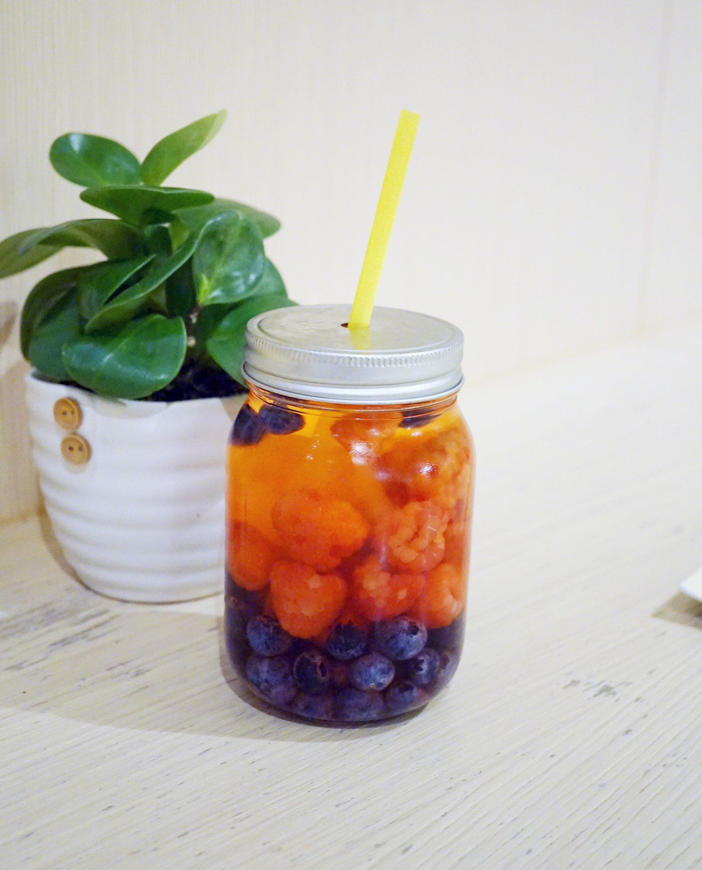 有點口渴所以先點了他們的detox water “Berries",很酸很酸!也很開胃,不過正常啊,如果Detox water 加了糖也不是detox water了,不過怕酸的朋友可以嚐嚐別的口味,像的這杯只有莓果類的Detox water 一定不會有多甜的了。