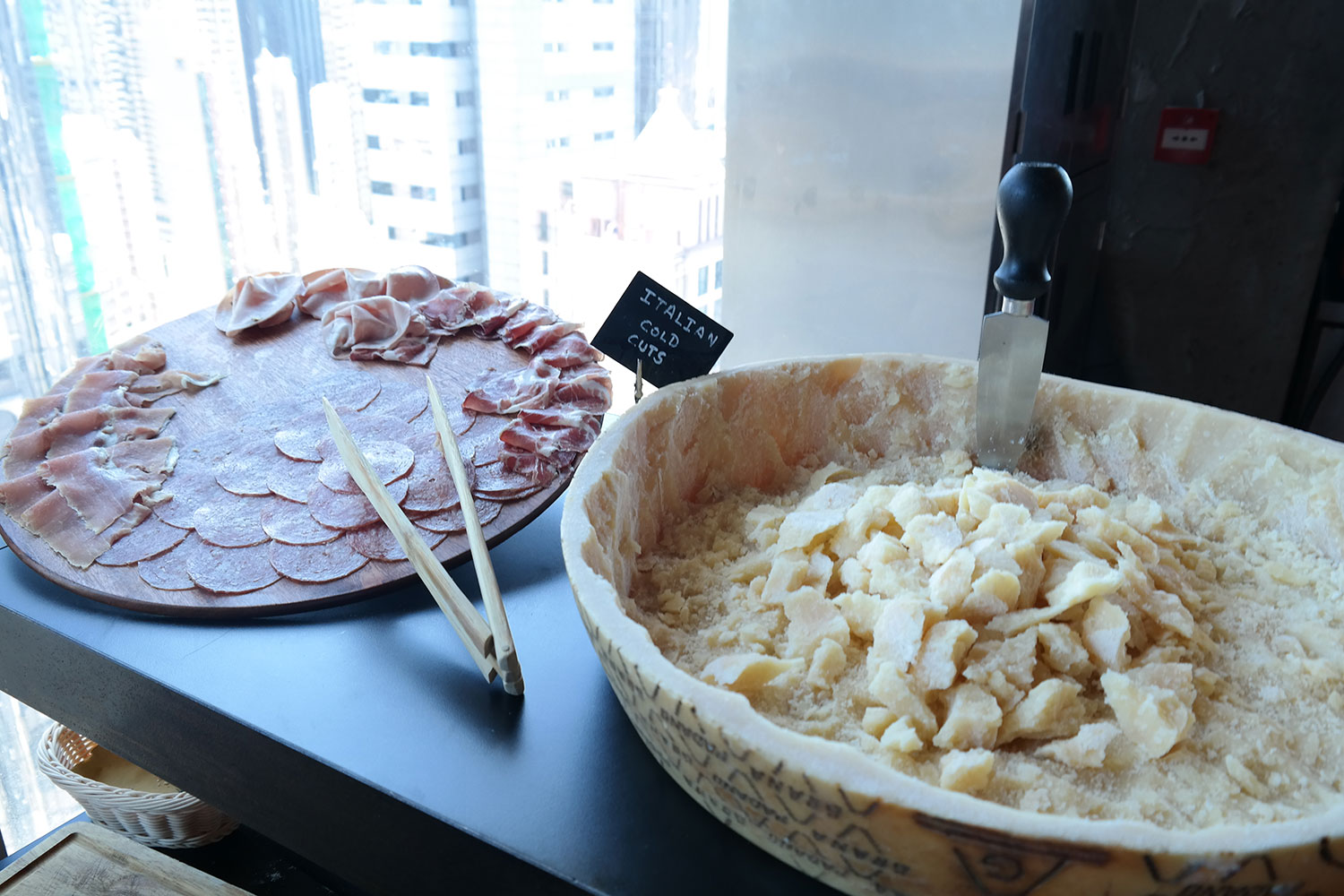 位於灣仔的Pirata絕對滿足到你的需要,只需要付HKD298(加一另計) 就可以享用他們的super brunch, brunch 中令人最吸引的是任食cold cut,沙律,芝士及烤牛肉。當然芝士的總類其實不多,但是Parmigiano (帕馬森芝士) 的servering style 十分豪邁,就是大大的芝士磚上用小鐵鏟鏟芝士了。自助模式及這樣去presentation 我相信在香港十分小見。至於cold cut 的品質也是十分的好,而且是任食的原故,還沒有吃到主菜我吃cold cut也吃得很飽了。