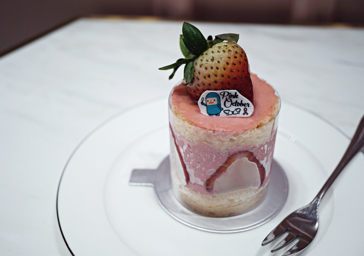 店子粉粉的,突然特在蛋糕櫃看到了一件像店子一樣,粉紅可愛的蛋糕,詢問店員這個是否這裡的招牌蛋糕,她說不是,但原來這個蛋糕是他們這個「粉紅十月」的限量蛋糕,名為Pink Mission 草莓蛋糕。 取這個名字其實原來想藉此機會能透過品嚐甜品同時亦為「粉紅十月」慈善活動出一分力,細味背後的意義,而且原來Pink Mission 蛋糕義賣所籌得善款會利益扣除成本後捐贈給香港癌症基金會。粉粉的店子再加上這個可愛精緻的蛋糕,好一個粉紅十月!我決定點來吃吃看也順便做做善事為社會出一分力吧。